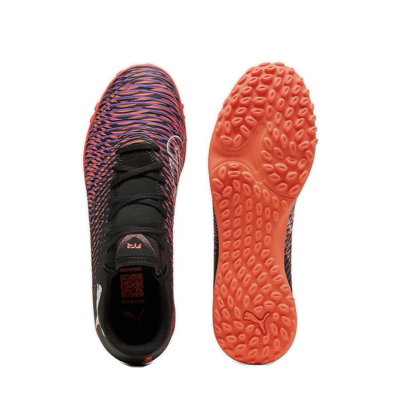 Libérez votre créativité avec la FUTURE 8 PLAY. La tige synthétique légère offre confort, soutien et durabilité, tandis que les lignes en relief sur l'avant-pied ajoutent de l'adhérence au ballon. Semelle extérieure en caoutchouc multi-pointes à profil bas, adaptée aux surfaces naturelles dures et au gazon artificiel (2G), pour que vous puissiez vous débarrasser des défenseurs avec facilité.