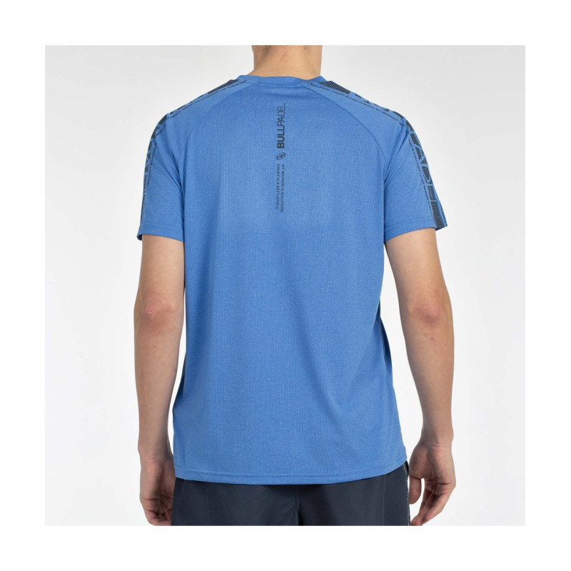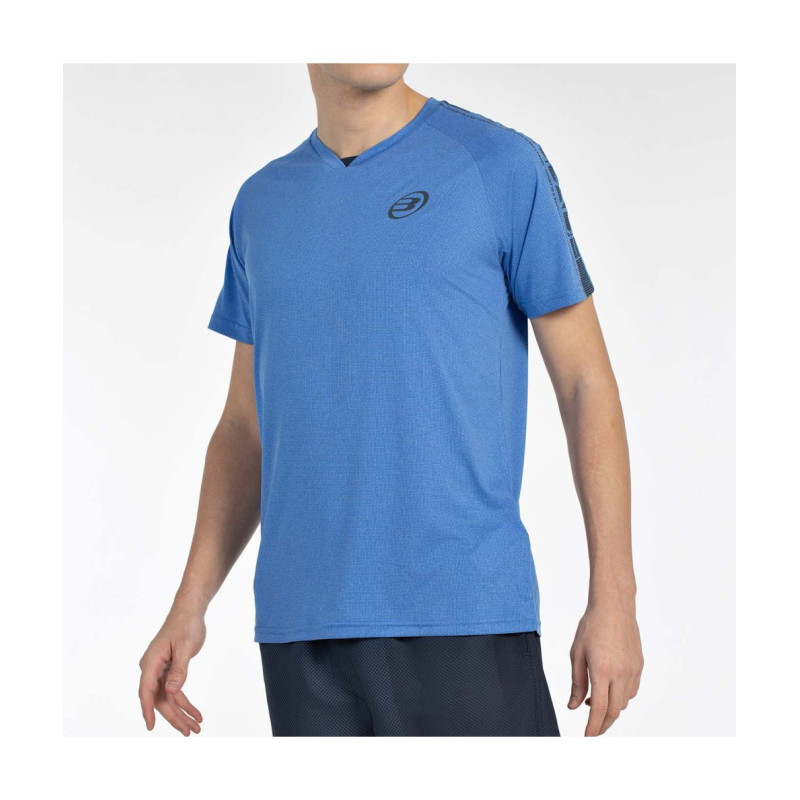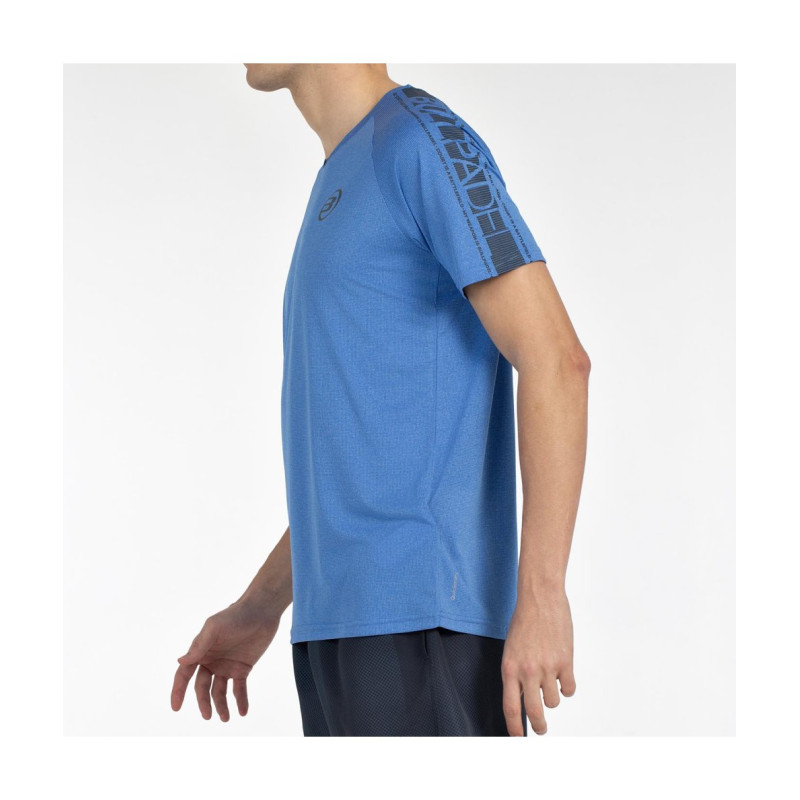 T-shirt de padel bleu léger avec un aspect vigoré au design attrayant grâce à des imprimés sur les manches et un détail contrasté sur le col.