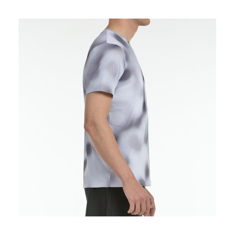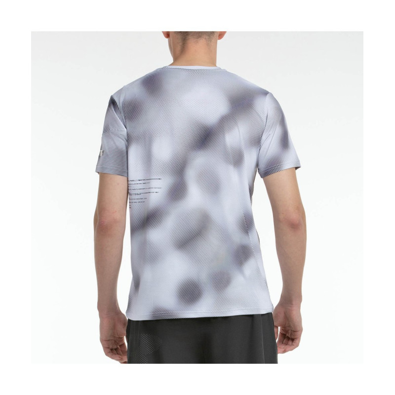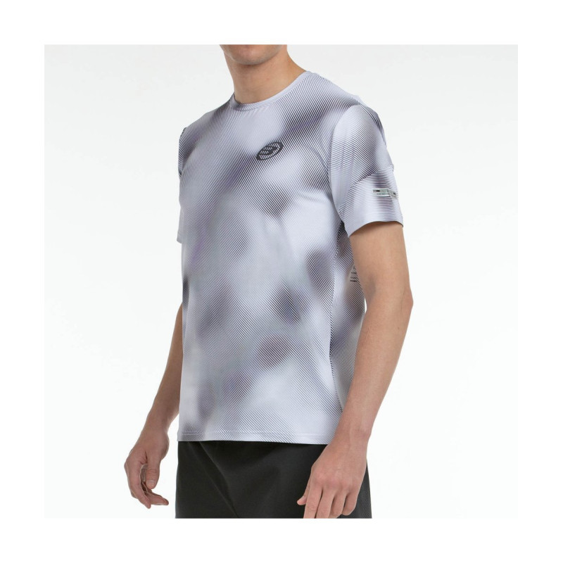 T-shirt de padel technique en polyester simple extensible, sublimé ton sur ton, imprimés réfléchissants et détails perforés au laser dans le dos.